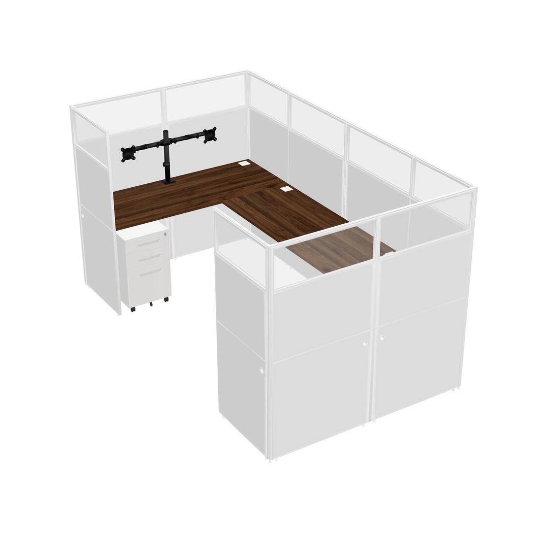 Columbia Walnut U-shaped Panel System For 1 Person + Monitor Arm (double Arms) + Metal Mobile Drawers For 1 User(s)