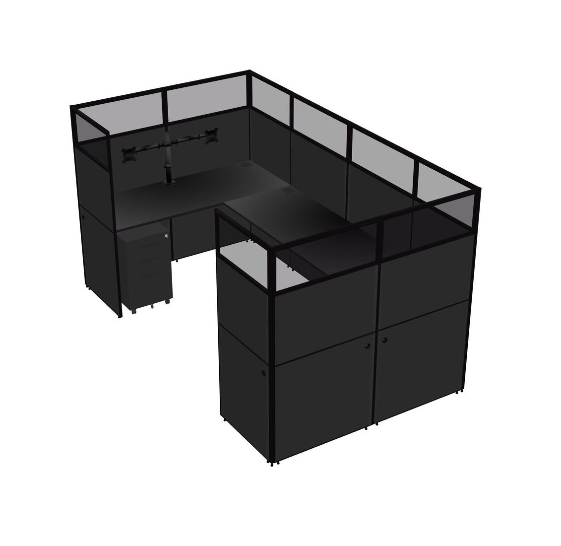 Black U-shaped Panel System For 1 Person + Monitor Arm (double Arms) + Metal Mobile Drawers For 1 User(s)