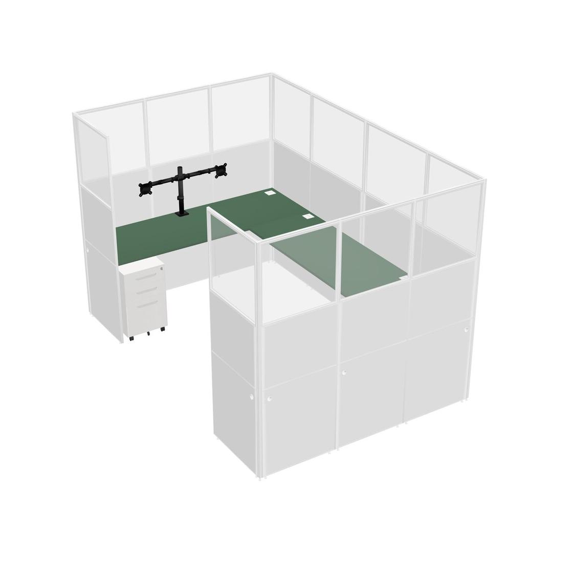 Green U-shaped Panel System For 1 Person + Monitor Arm (double Arms) + Metal Mobile Drawers For 1 User(s)