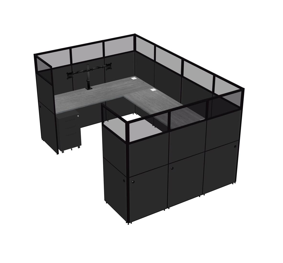 Grey U-shaped Panel System For 1 Person + Monitor Arm (double Arms) + Metal Mobile Drawers For 1 User(s)