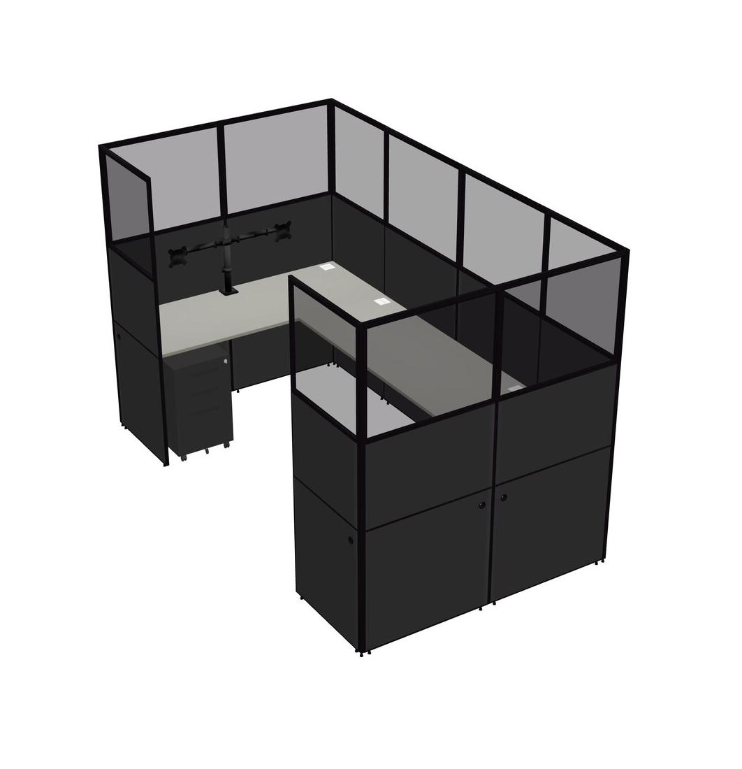 Grey Shadows U-shaped Panel System For 1 Person + Monitor Arm (double Arms) + Metal Mobile Drawers For 1 User(s)