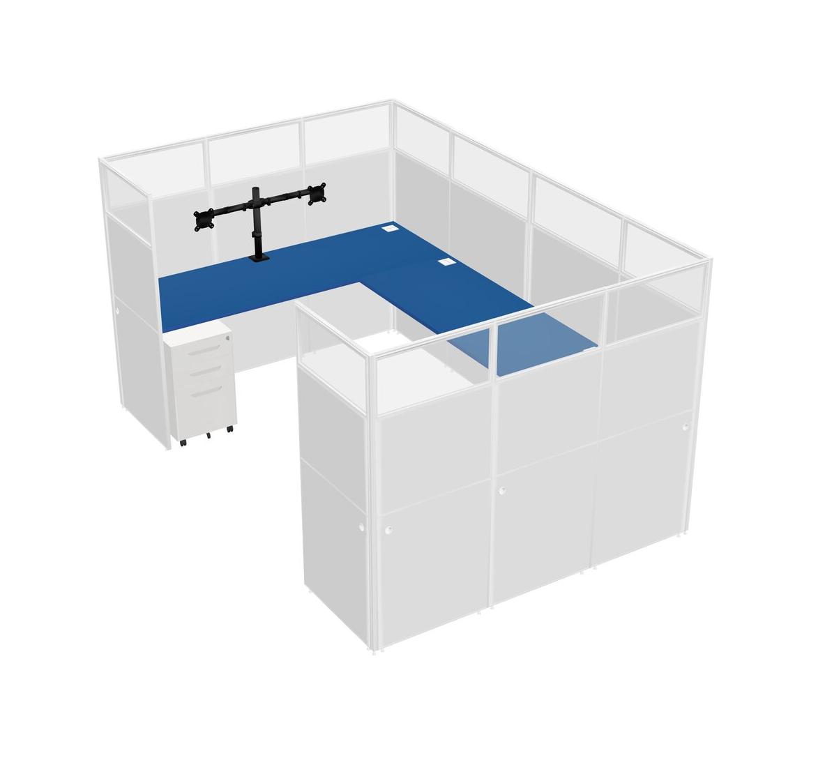 Prism Blue U-shaped Panel System For 1 Person + Monitor Arm (double Arms) + Metal Mobile Drawers For 1 User(s)