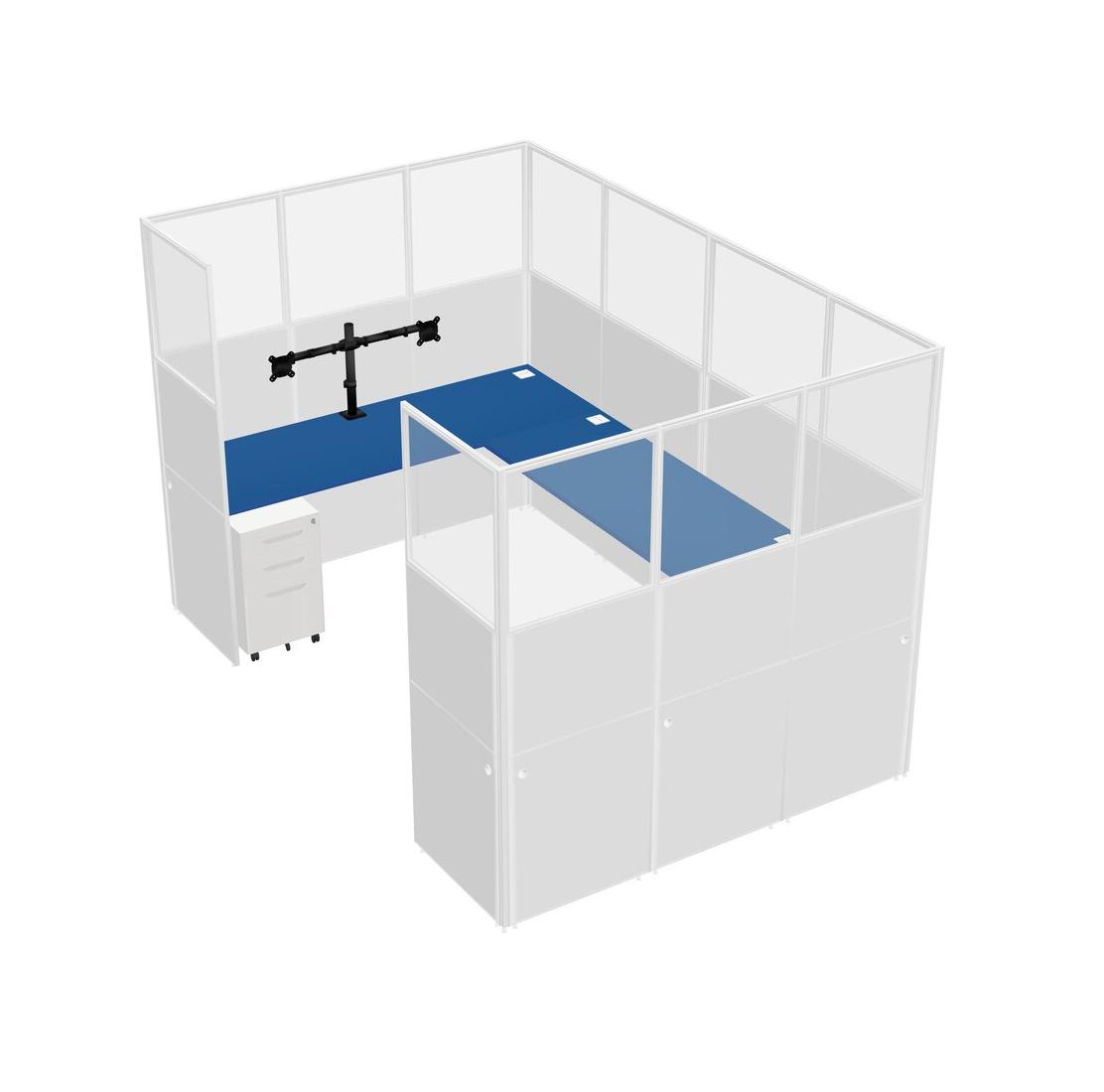 Prism Blue U-shaped Panel System For 1 Person + Monitor Arm (double Arms) + Metal Mobile Drawers For 1 User(s)