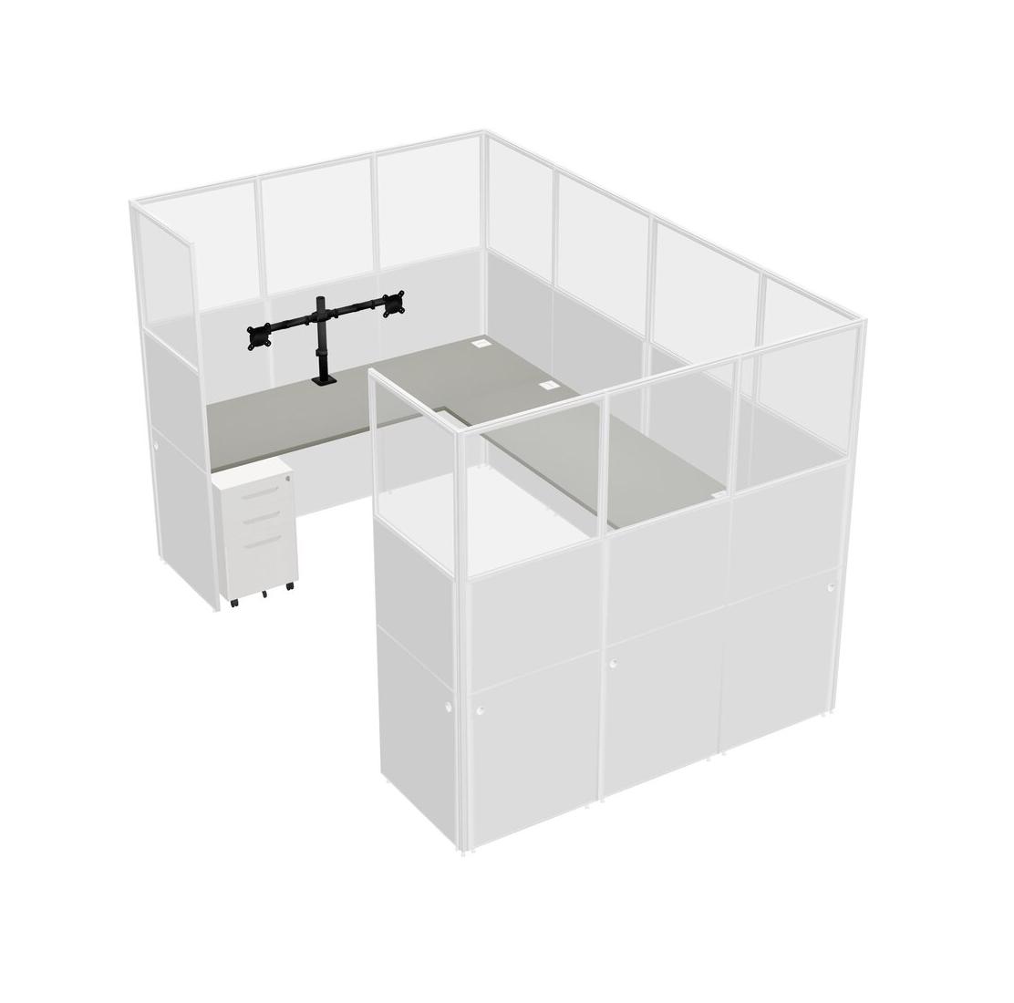 Grey Shadows U-shaped Panel System For 1 Person + Monitor Arm (double Arms) + Metal Mobile Drawers For 1 User(s)