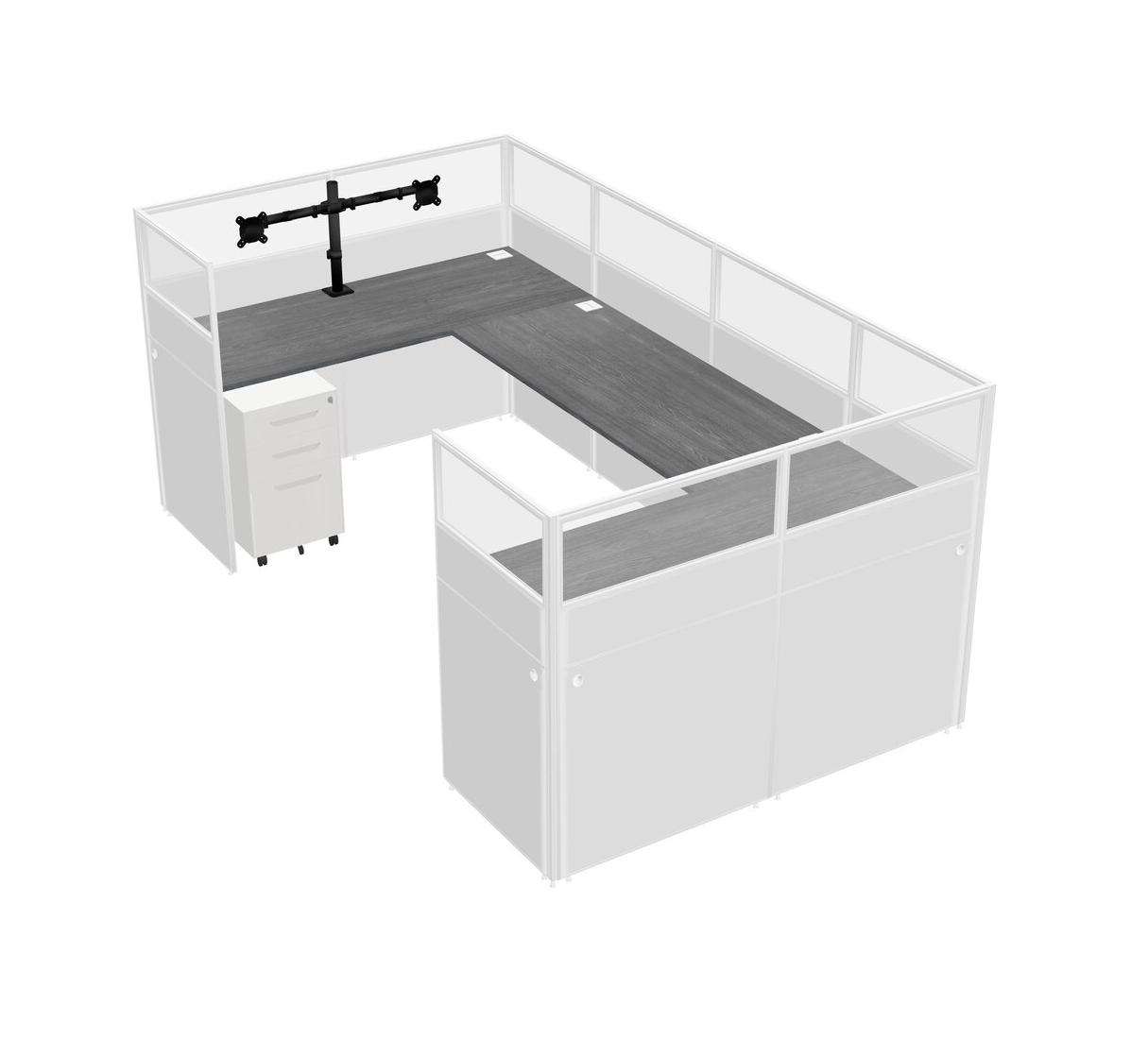 Grey U-shaped Panel System For 1 Person + Monitor Arm (double Arms) + Metal Mobile Drawers For 1 User(s)