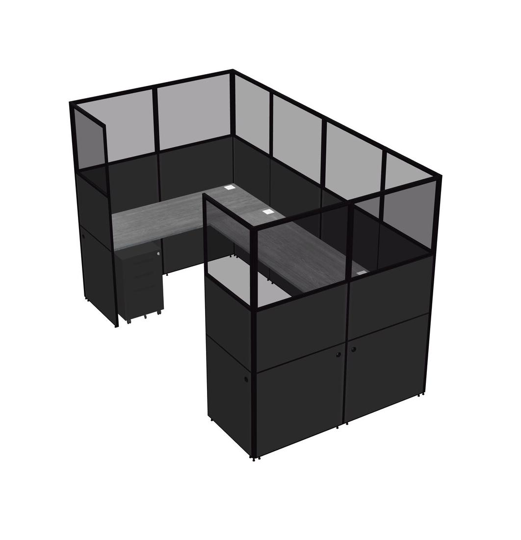 Grey U-shaped Panel System For 1 Person + Metal Mobile Drawers For 1 User(s)