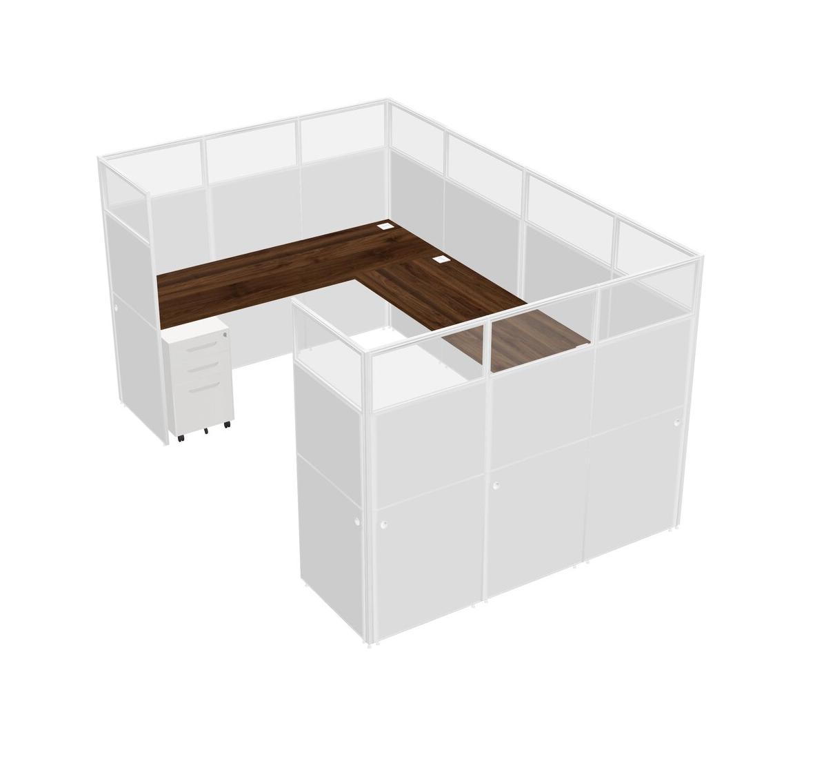 Columbia Walnut U-shaped Panel System For 1 Person + Metal Mobile Drawers For 1 User(s)