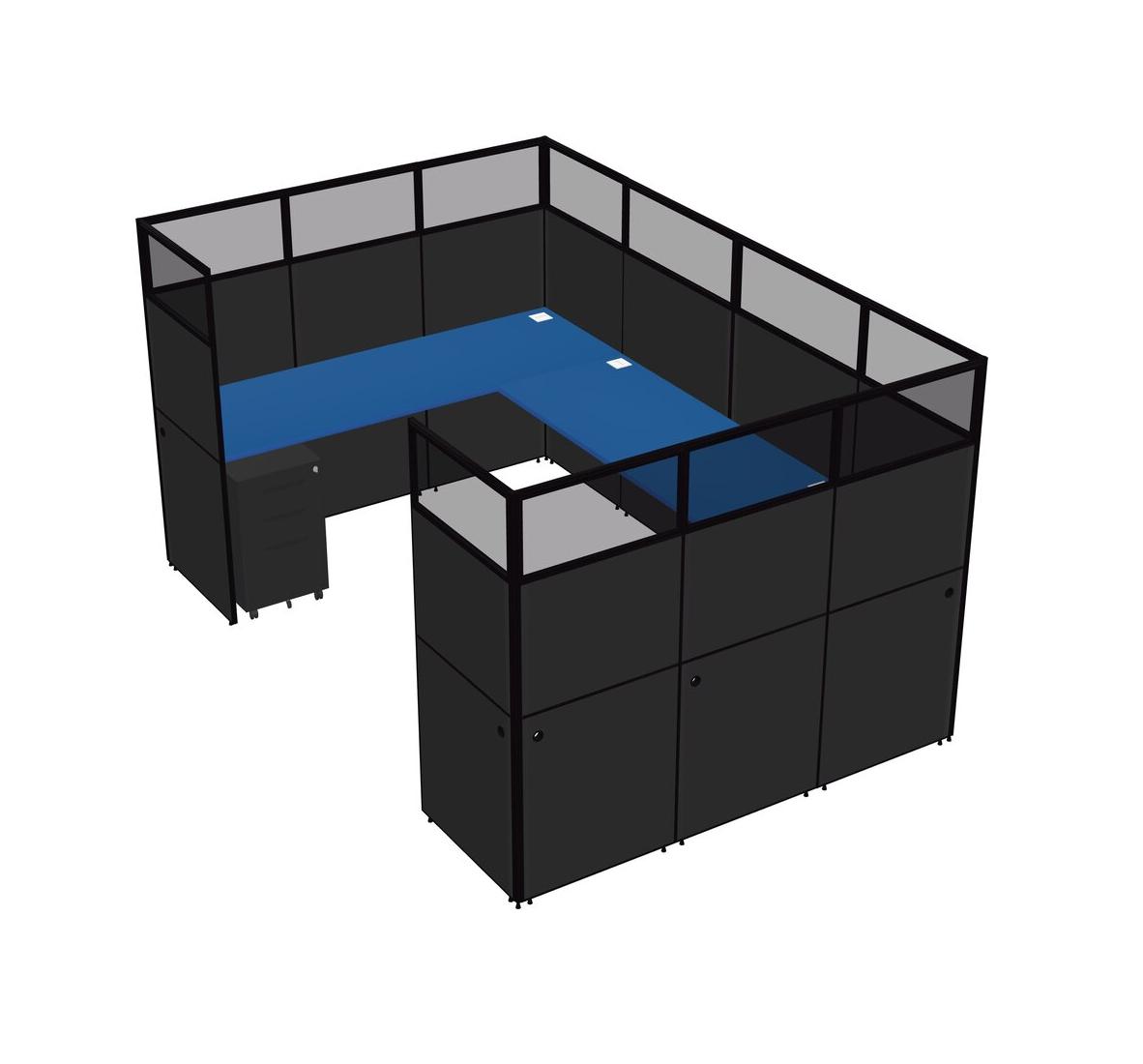Prism Blue U-shaped Panel System For 1 Person + Metal Mobile Drawers For 1 User(s)