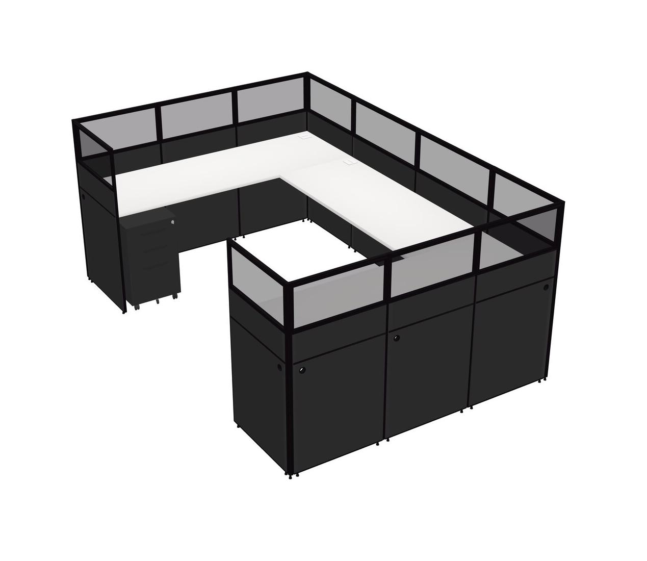 White U-shaped Panel System For 1 Person + Metal Mobile Drawers For 1 User(s)