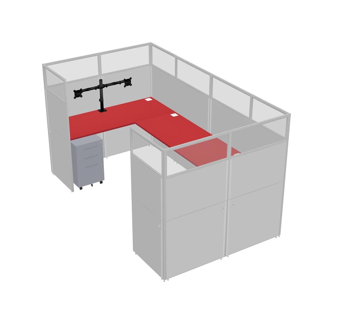 Prism Red U-shaped Panel System For 1 Person + Monitor Arm (double Arms) + Metal Mobile Drawers For 1 User(s)