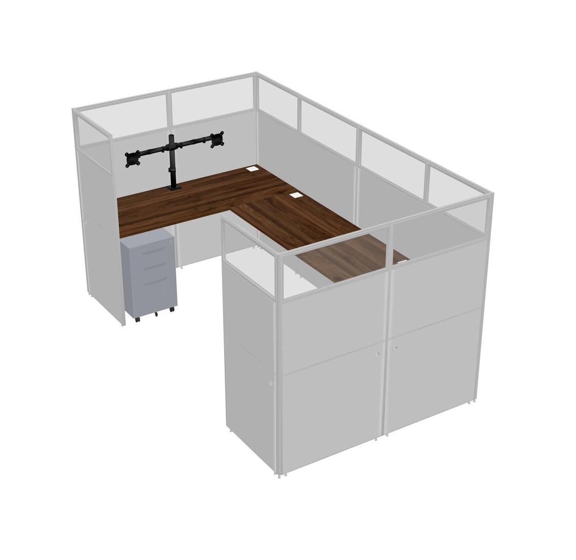 Columbia Walnut U-shaped Panel System For 1 Person + Monitor Arm (double Arms) + Metal Mobile Drawers For 1 User(s)