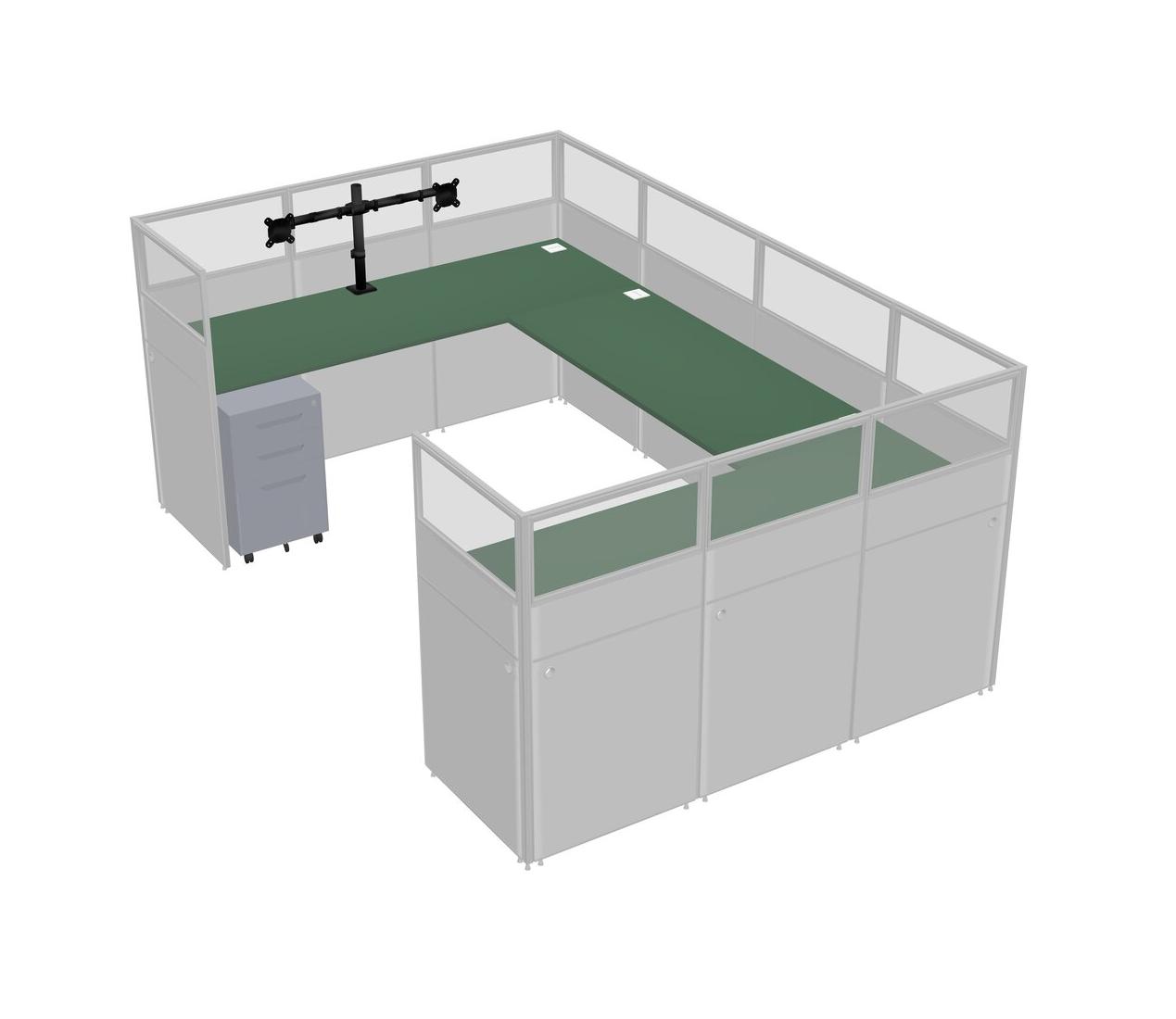 Green U-shaped Panel System For 1 Person + Monitor Arm (double Arms) + Metal Mobile Drawers For 1 User(s)