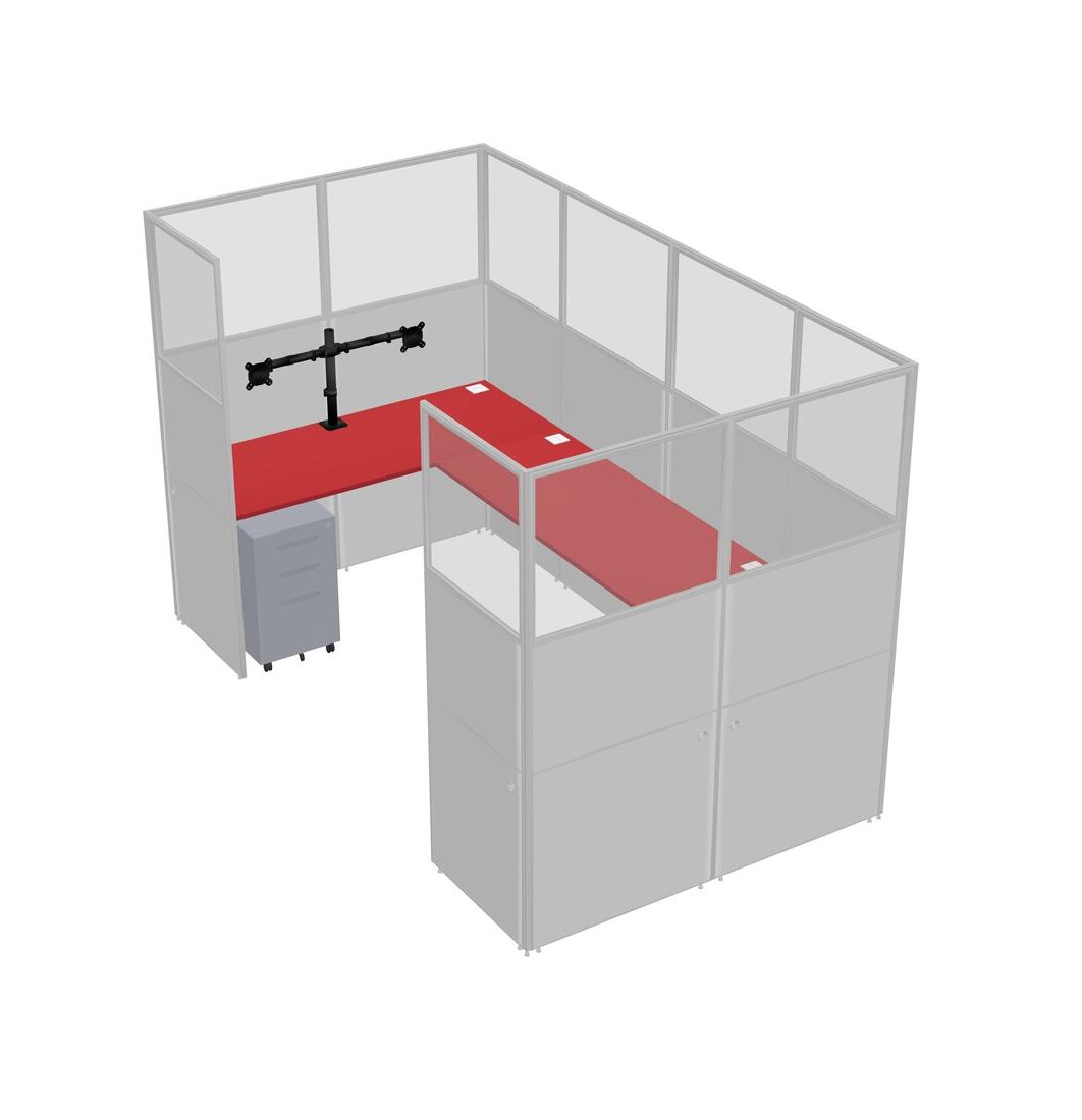 Prism Red U-shaped Panel System For 1 Person + Monitor Arm (double Arms) + Metal Mobile Drawers For 1 User(s)
