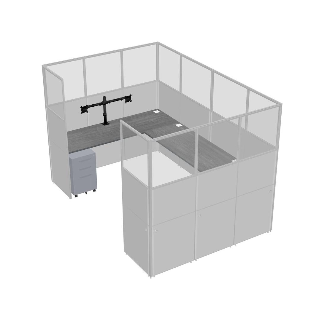 Grey U-shaped Panel System For 1 Person + Monitor Arm (double Arms) + Metal Mobile Drawers For 1 User(s)