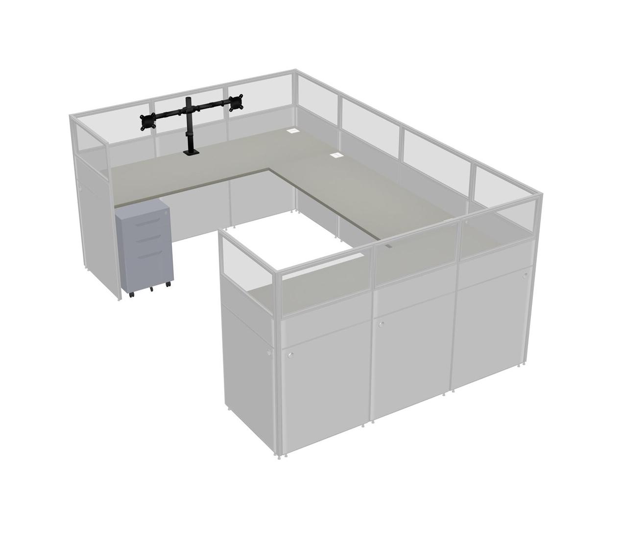 Grey Shadows U-shaped Panel System For 1 Person + Monitor Arm (double Arms) + Metal Mobile Drawers For 1 User(s)