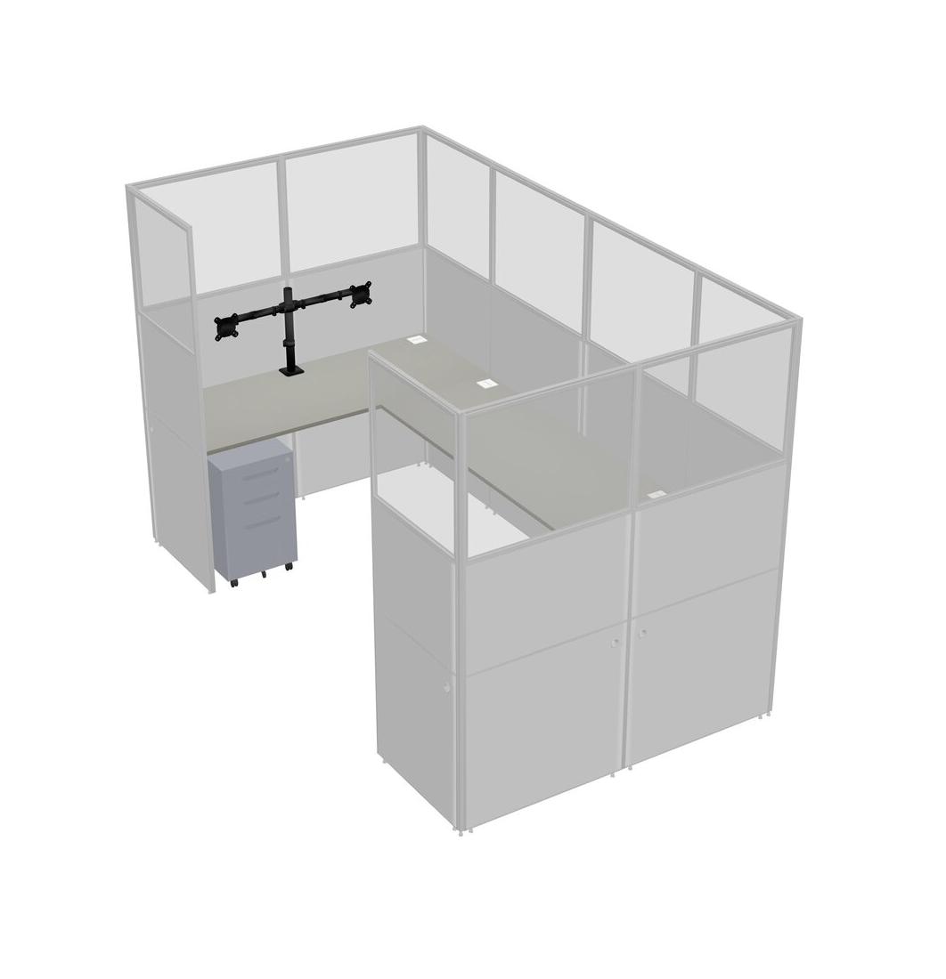 Grey Shadows U-shaped Panel System For 1 Person + Monitor Arm (double Arms) + Metal Mobile Drawers For 1 User(s)