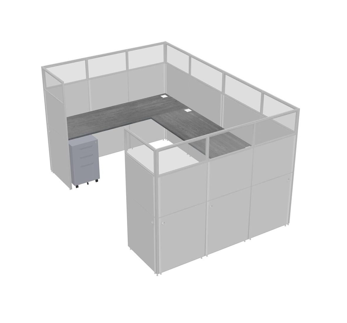 Grey U-shaped Panel System For 1 Person + Metal Mobile Drawers For 1 User(s)