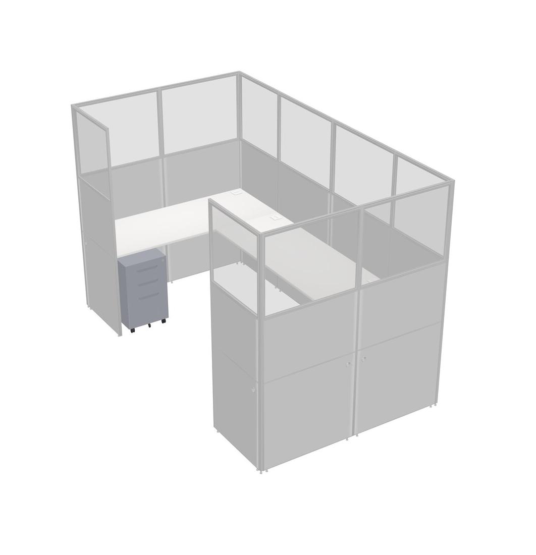 White U-shaped Panel System For 1 Person + Metal Mobile Drawers For 1 User(s)