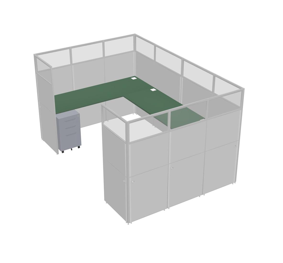 Green U-shaped Panel System For 1 Person + Metal Mobile Drawers For 1 User(s)