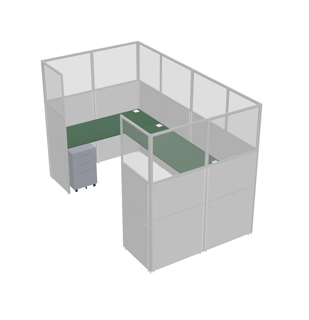 Green U-shaped Panel System For 1 Person + Metal Mobile Drawers For 1 User(s)