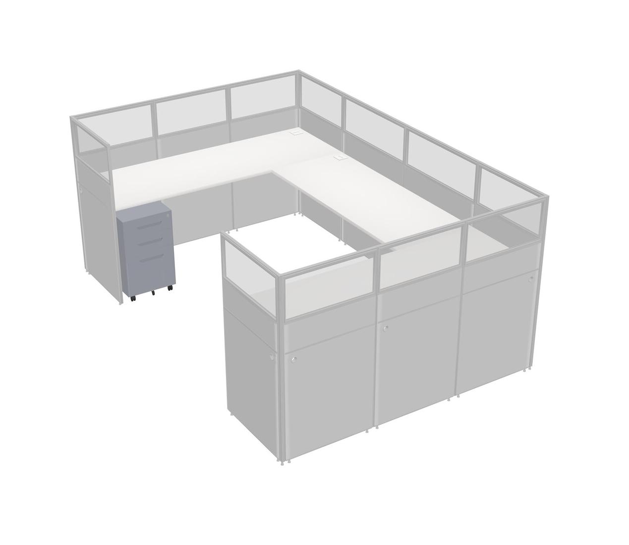 White U-shaped Panel System For 1 Person + Metal Mobile Drawers For 1 User(s)