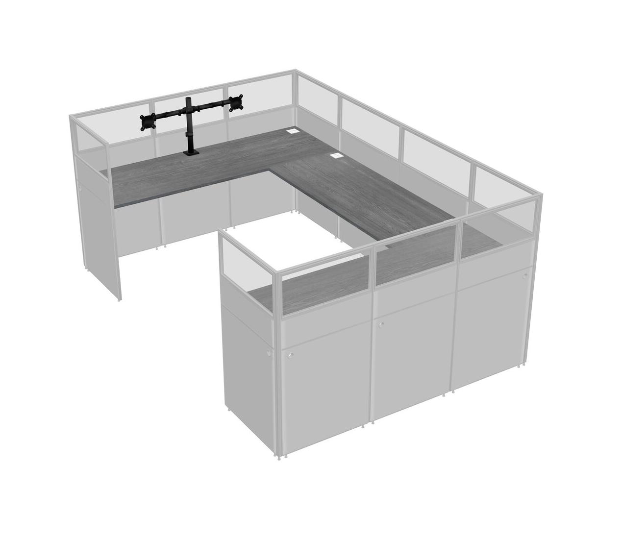 Grey U-shaped Panel System For 1 Person + Monitor Arm (double Arms) For 1 User(s)