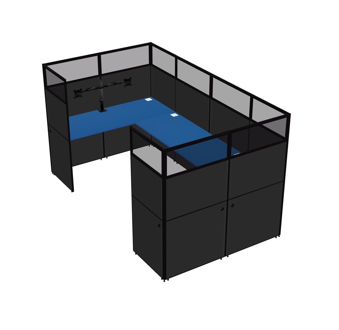 Prism Blue U-shaped Panel System For 1 Person + Monitor Arm (double Arms) For 1 User(s)