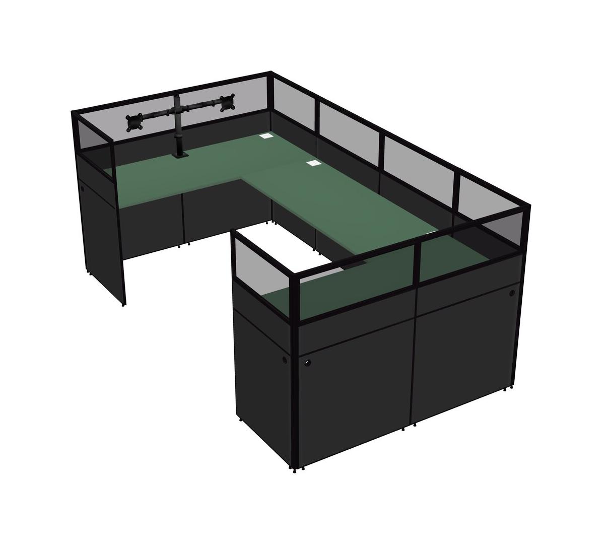 Green U-shaped Panel System For 1 Person + Monitor Arm (double Arms) For 1 User(s)