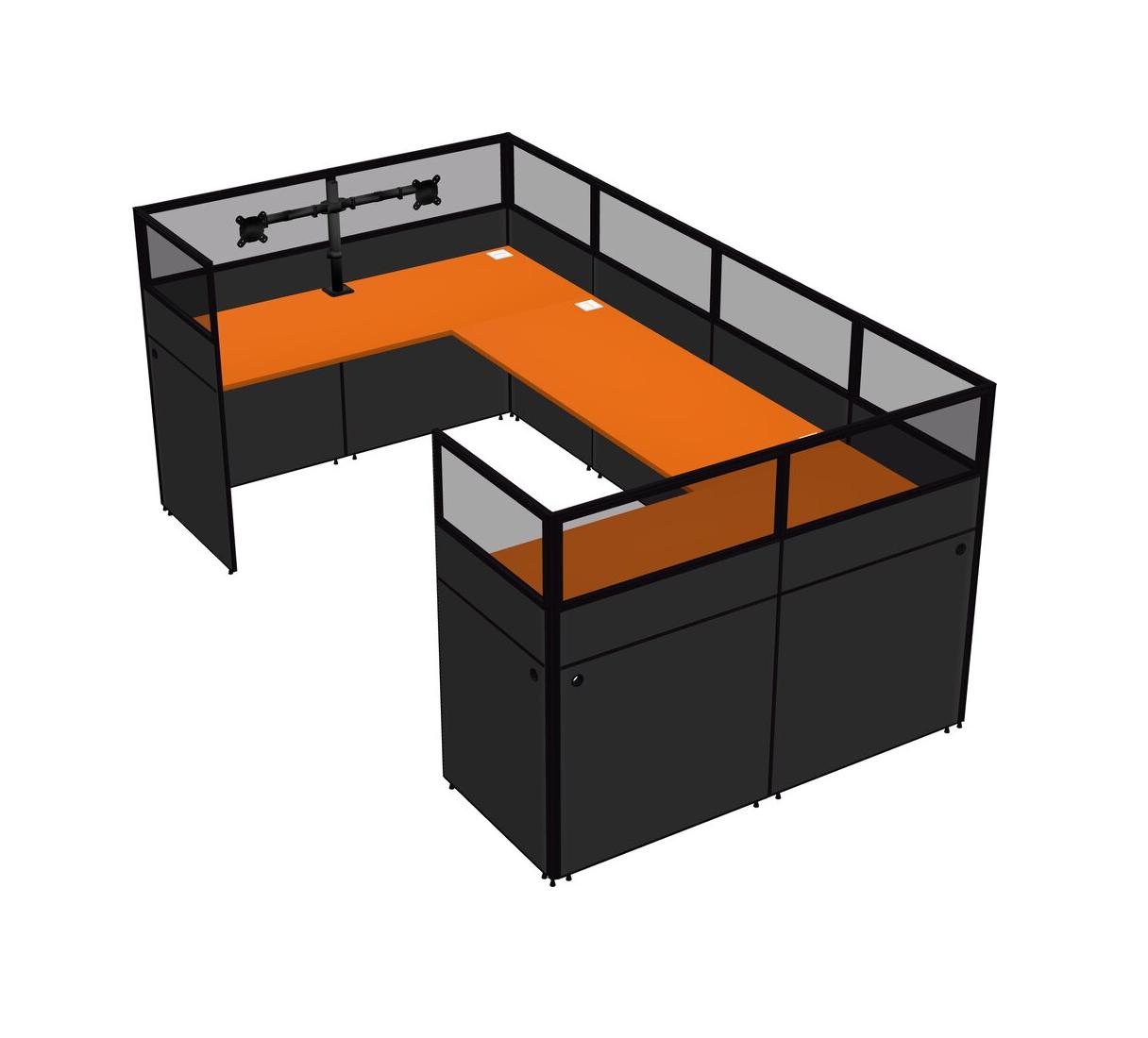 Orange U-shaped Panel System For 1 Person + Monitor Arm (double Arms) For 1 User(s)