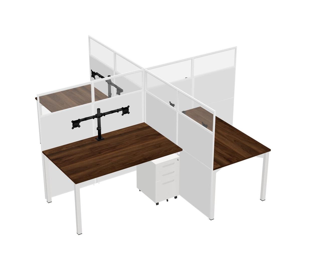 Columbia Walnut Quad Cubicle Workstations For 4 + White Metal Mobile Drawers + Monitor Arm (double Arms)