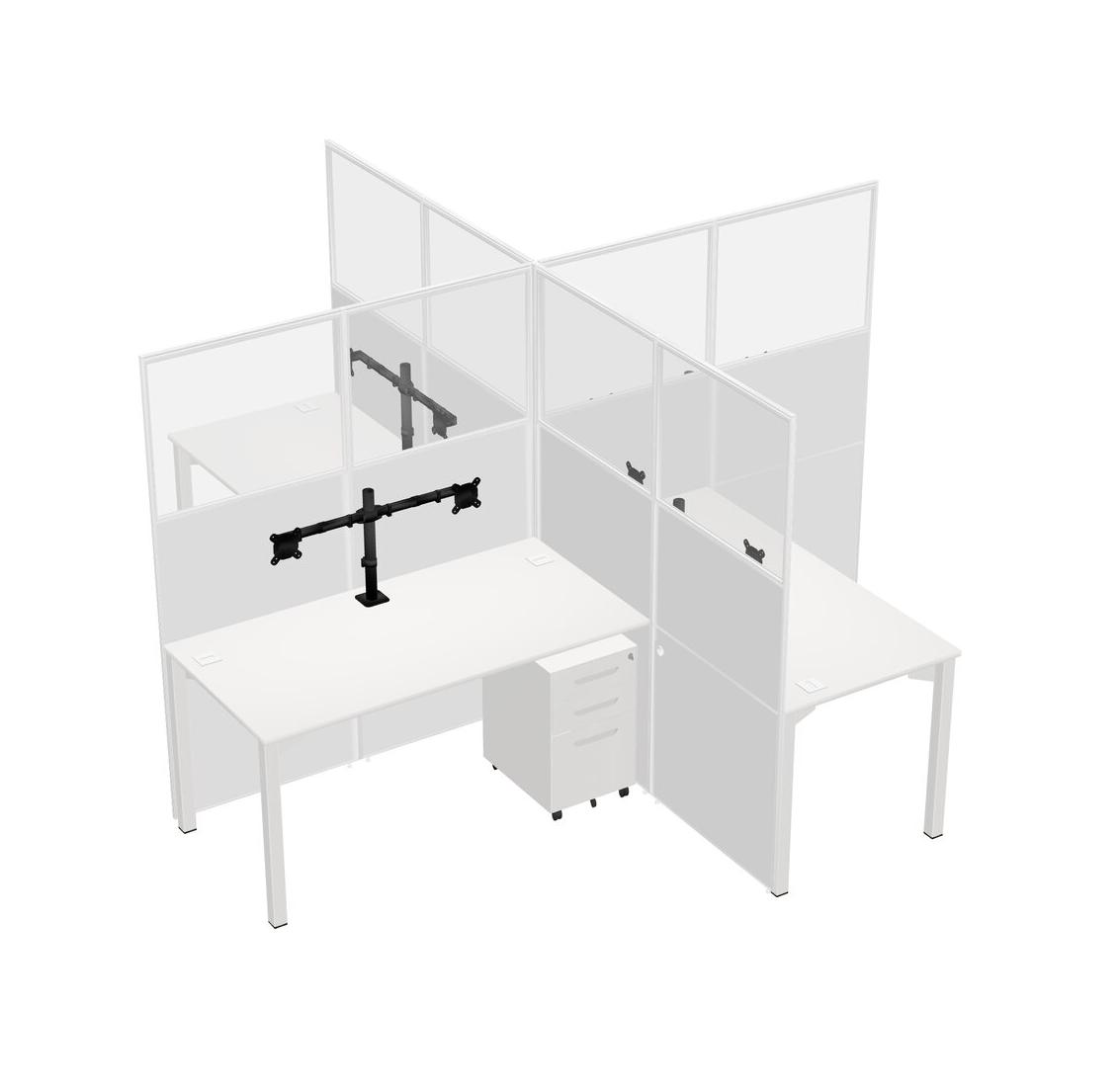 White Quad Cubicle Workstations For 4 + White Metal Mobile Drawers + Monitor Arm (double Arms)