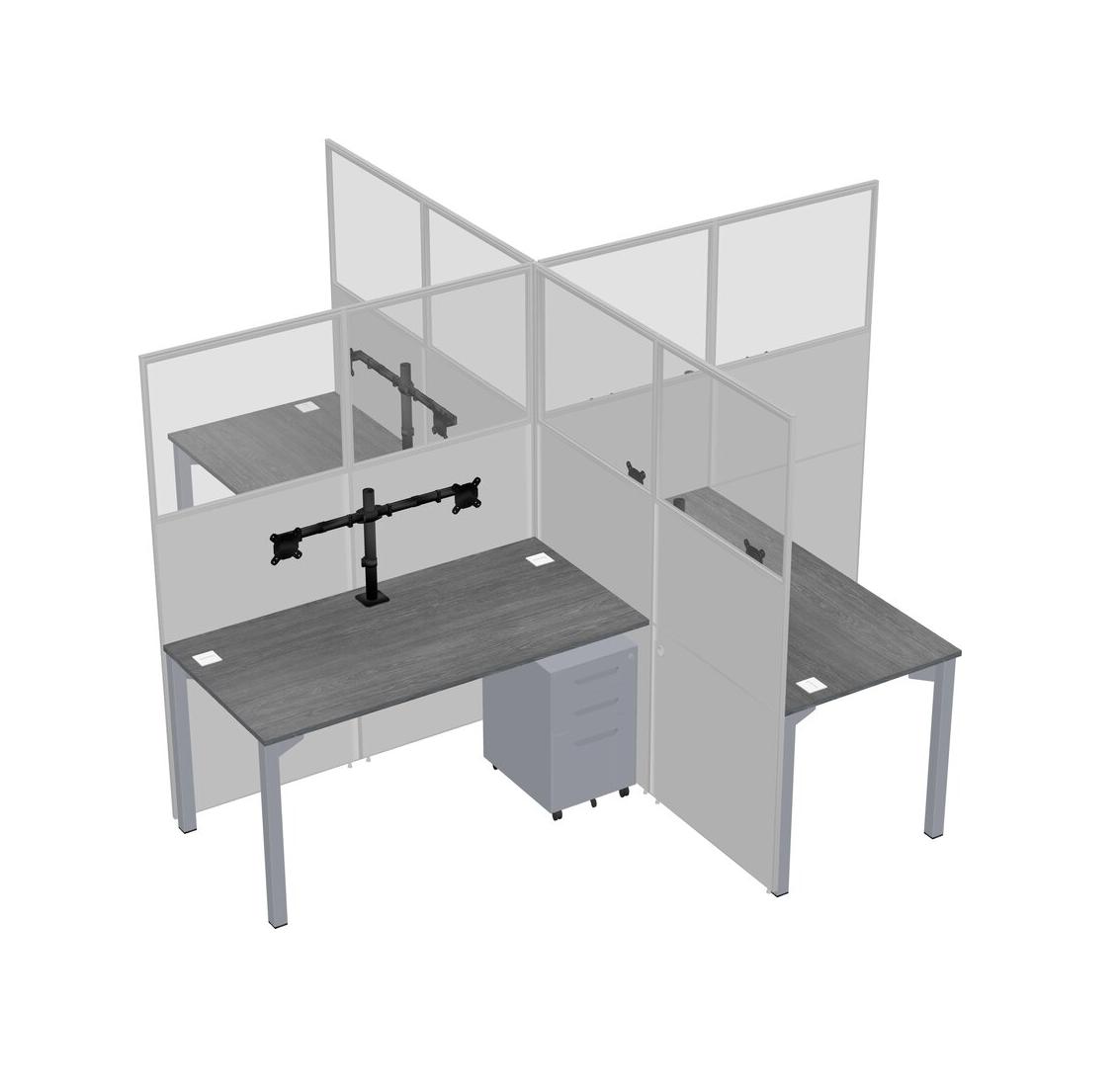 Grey Quad Cubicle Workstations For 4 + Grey Metal Mobile Drawers + Monitor Arm (double Arms)