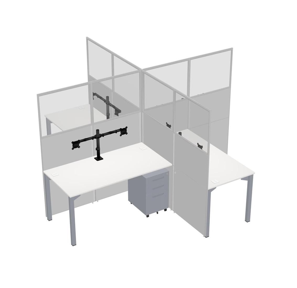 White Quad Cubicle Workstations For 4 + Grey Metal Mobile Drawers + Monitor Arm (double Arms)
