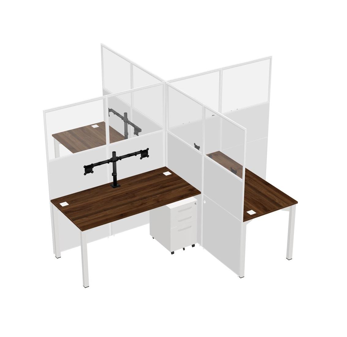 Columbia Walnut Quad Cubicle Workstations For 4 + White Metal Mobile Drawers + Monitor Arm (double Arms)