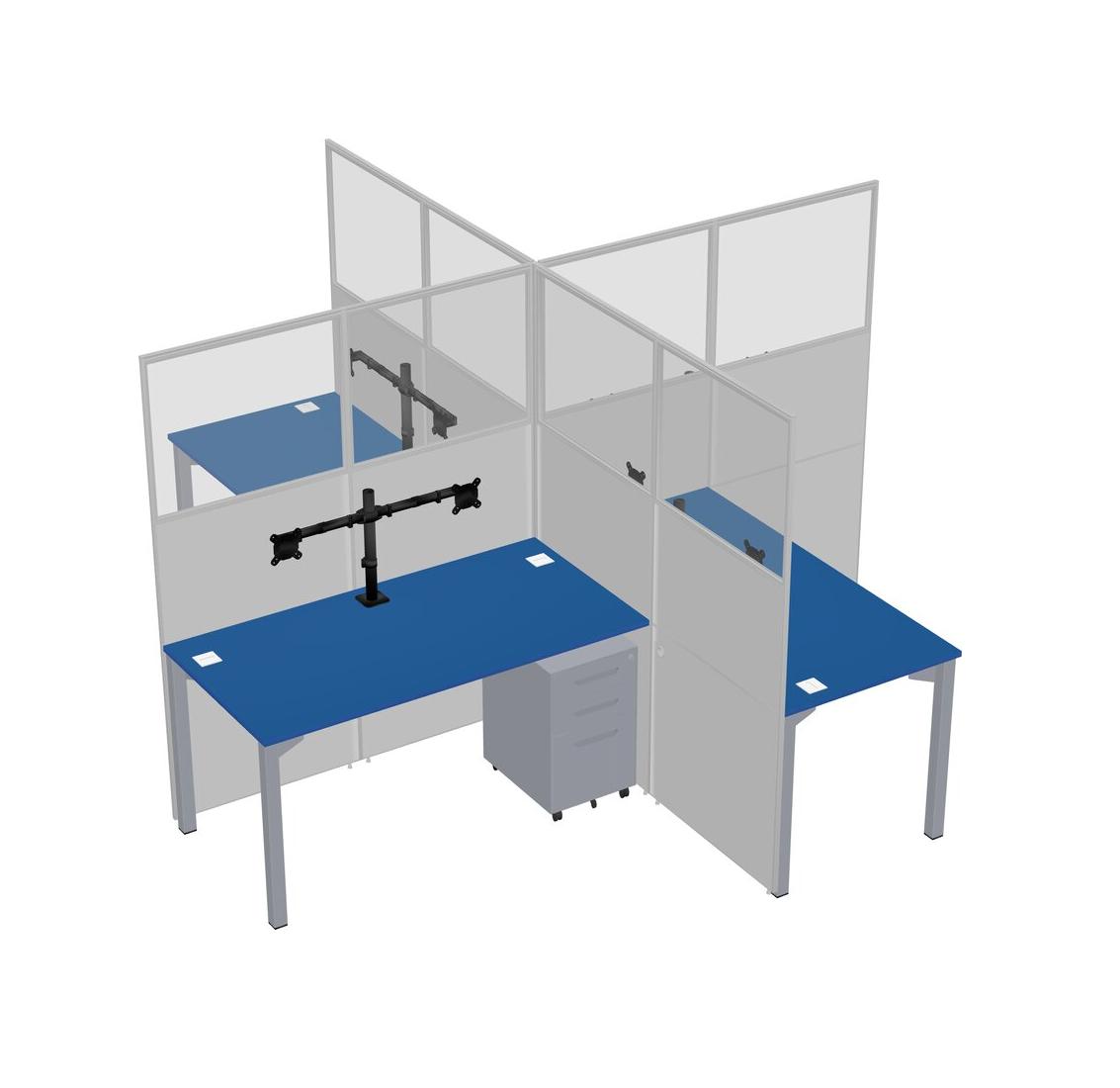 Prism Blue Quad Cubicle Workstations For 4 + Grey Metal Mobile Drawers + Monitor Arm (double Arms)