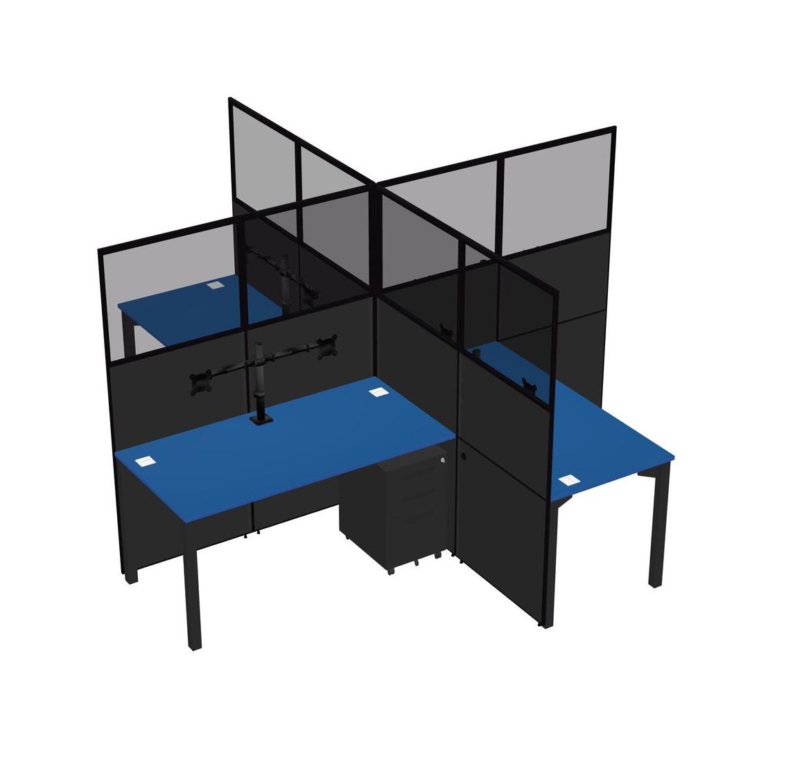 Prism Blue Quad Cubicle Workstations For 4 + Black Metal Mobile Drawers + Monitor Arm (double Arms)