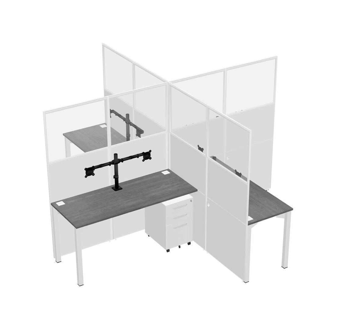 Grey Quad Cubicle Workstations For 4 + White Metal Mobile Drawers + Monitor Arm (double Arms)