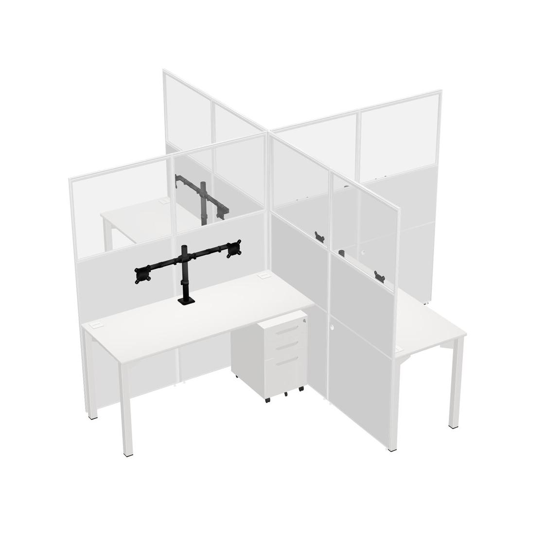 White Quad Cubicle Workstations For 4 + White Metal Mobile Drawers + Monitor Arm (double Arms)
