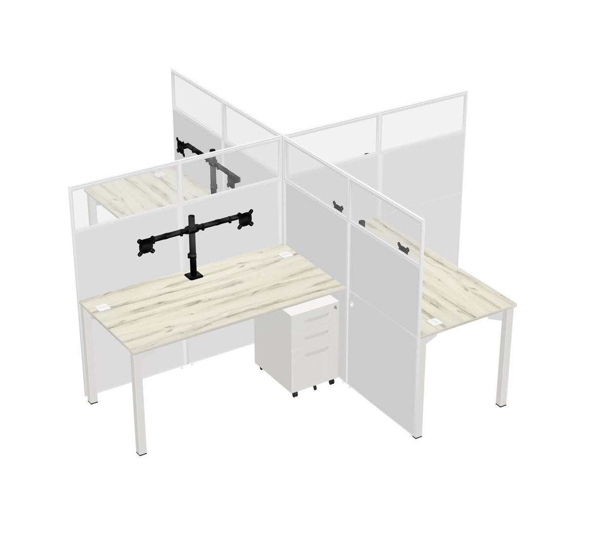 Heinne Holz Quad Cubicle Workstations For 4 + White Metal Mobile Drawers + Monitor Arm (double Arms)