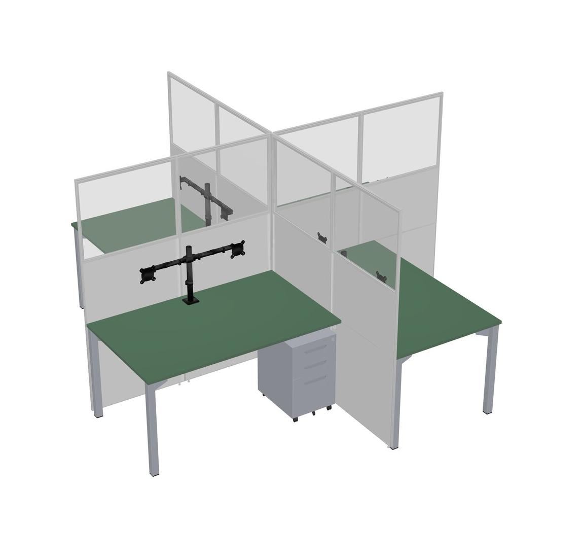 Green Quad Cubicle Workstations For 4 + Grey Metal Mobile Drawers + Monitor Arm (double Arms)