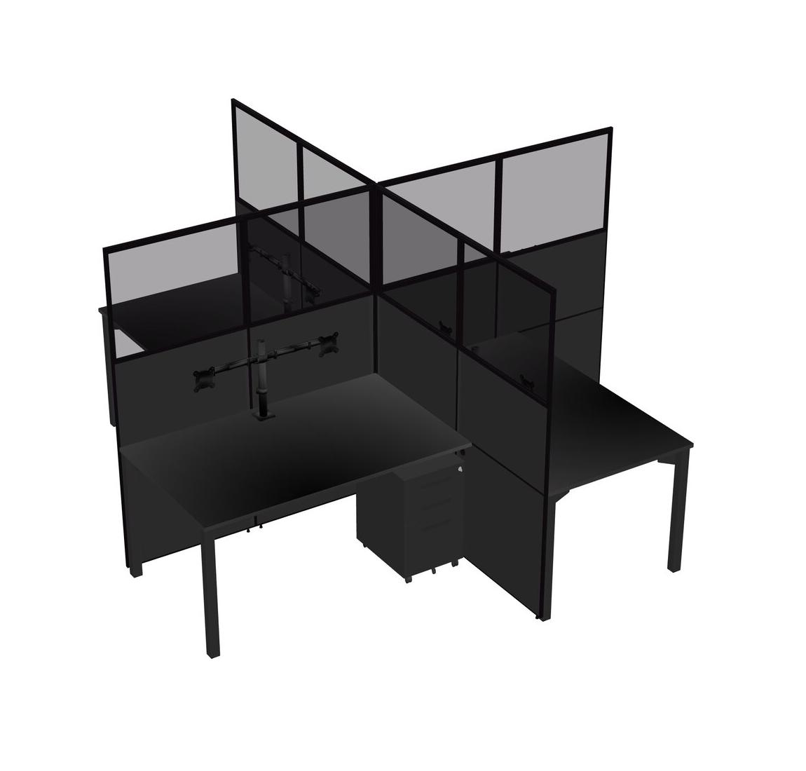 Black Quad Cubicle Workstations For 4 + Black Metal Mobile Drawers + Monitor Arm (double Arms)