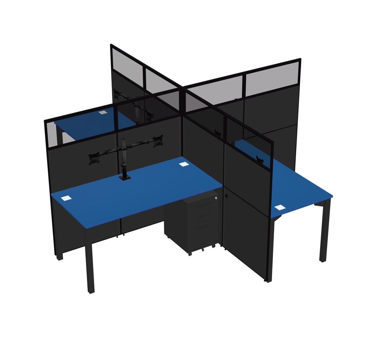 Prism Blue Quad Cubicle Workstations For 4 + Black Metal Mobile Drawers + Monitor Arm (double Arms)