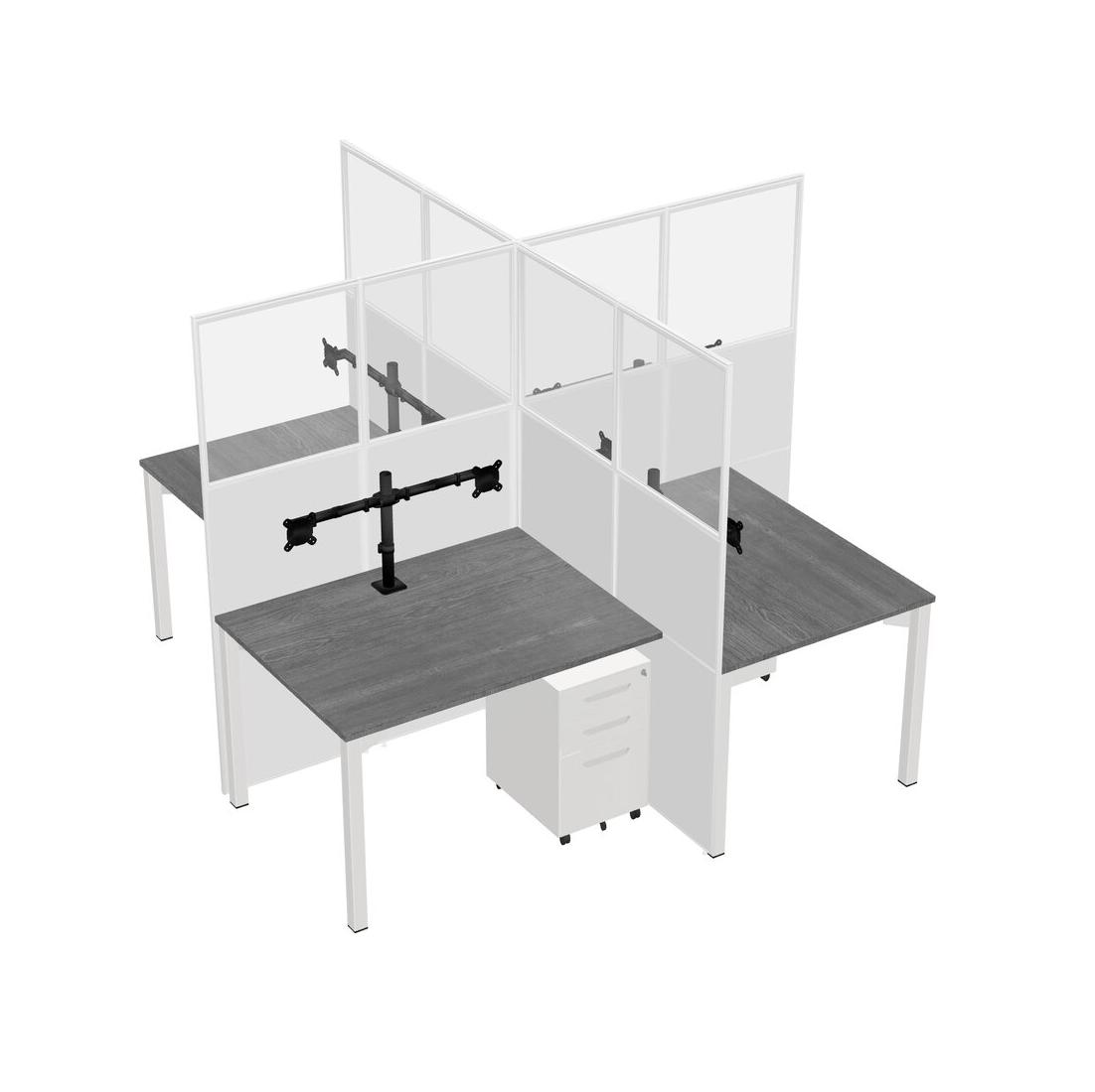 Grey Quad Cubicle Workstations For 4 + White Metal Mobile Drawers + Monitor Arm (double Arms)