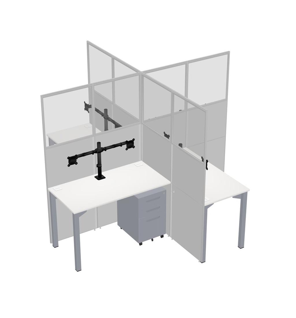 White Quad Cubicle Workstations For 4 + Grey Metal Mobile Drawers + Monitor Arm (double Arms)