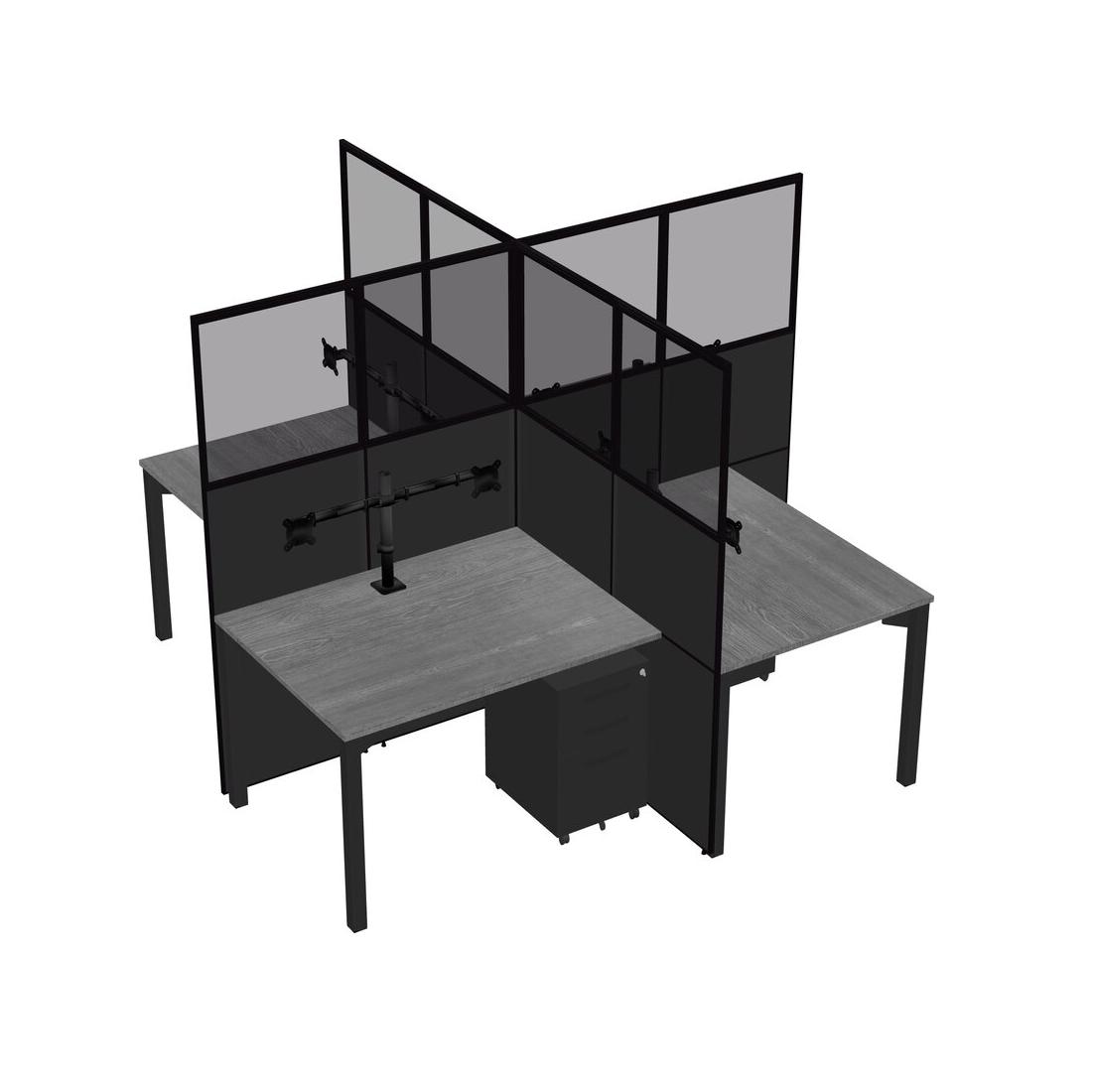 Grey Quad Cubicle Workstations For 4 + Black Metal Mobile Drawers + Monitor Arm (double Arms)