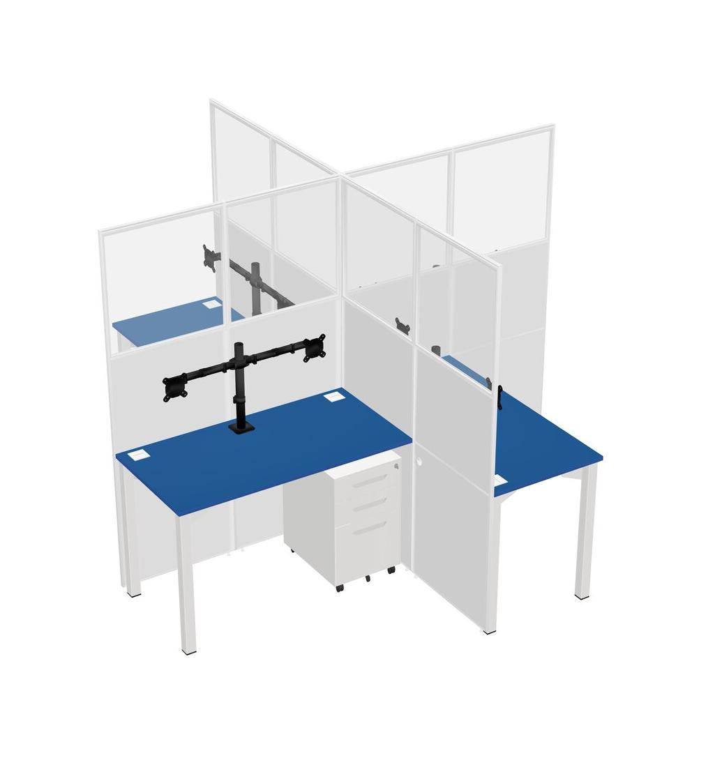 Prism Blue Quad Cubicle Workstations For 4 + White Metal Mobile Drawers + Monitor Arm (double Arms)