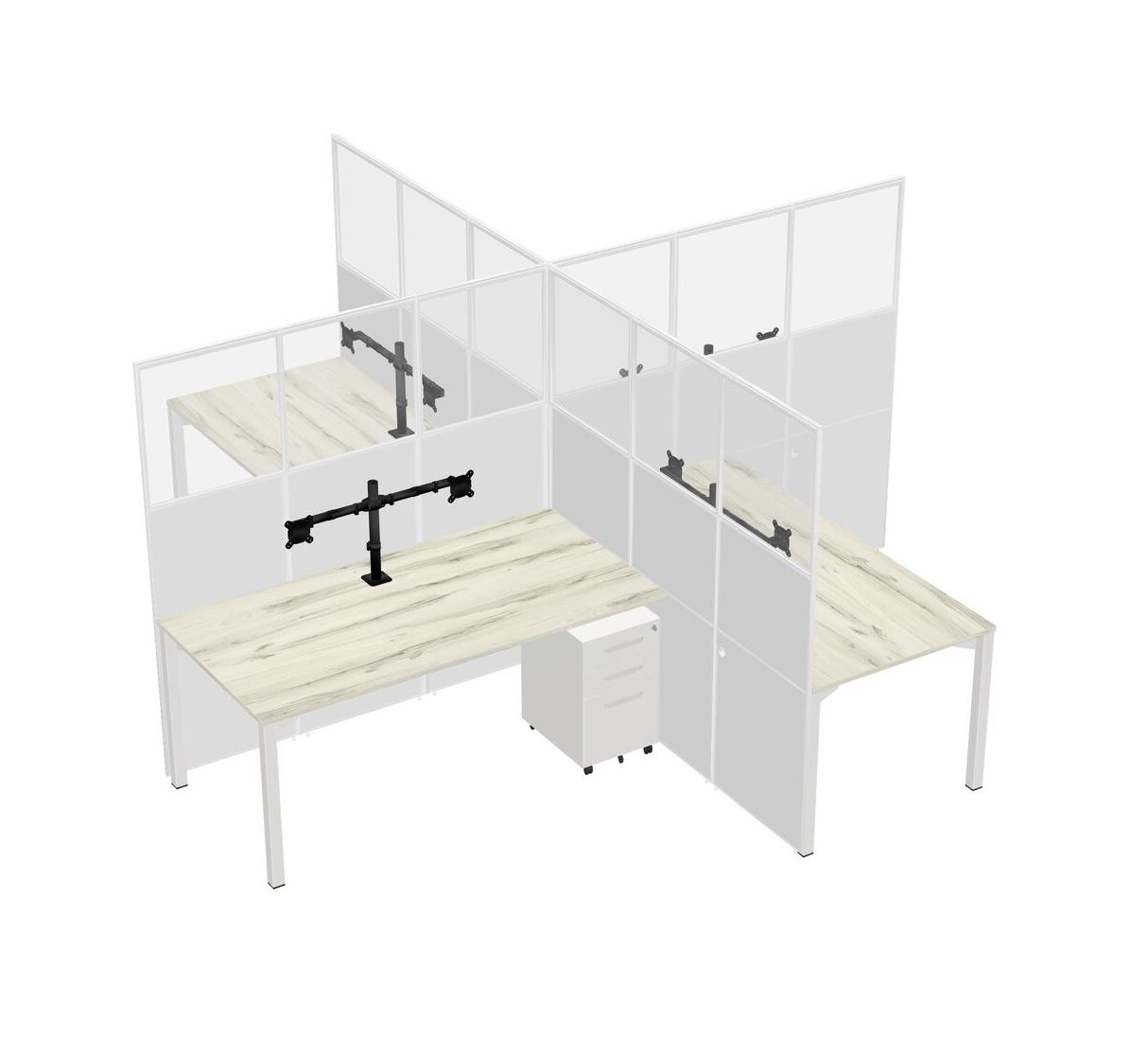 Heinne Holz Quad Cubicle Workstations For 4 + White Metal Mobile Drawers + Monitor Arm (double Arms)