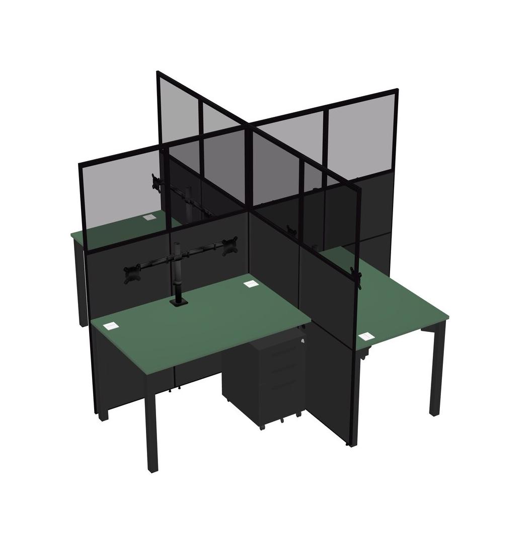Green Quad Cubicle Workstations For 4 + Black Metal Mobile Drawers + Monitor Arm (double Arms)