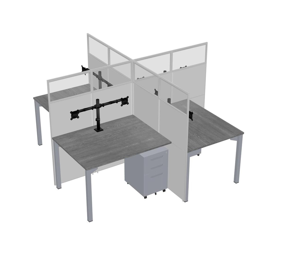 Grey Quad Cubicle Workstations For 4 + Grey Metal Mobile Drawers + Monitor Arm (double Arms)