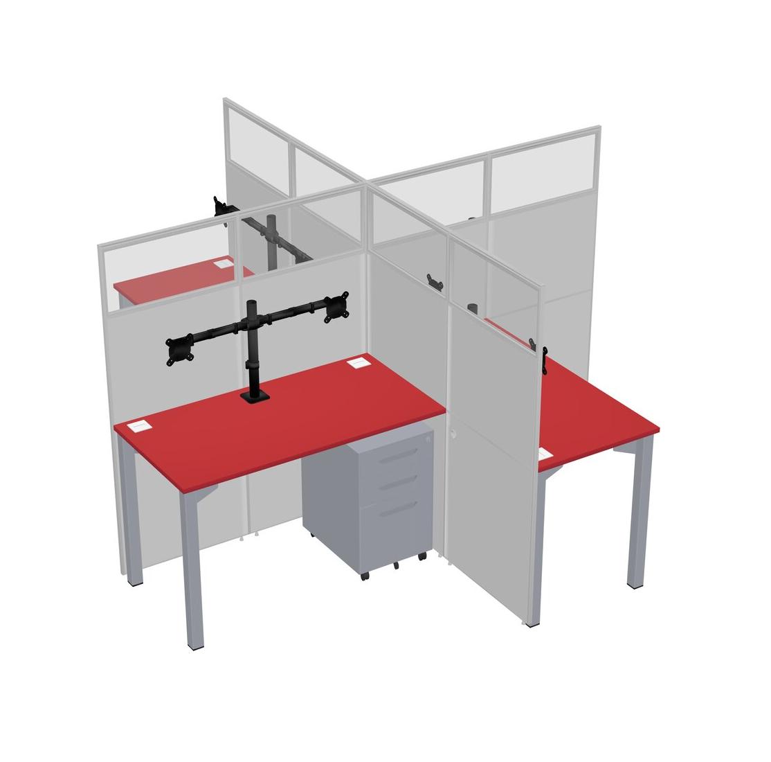 Prism Red Quad Cubicle Workstations For 4 + Grey Metal Mobile Drawers + Monitor Arm (double Arms)